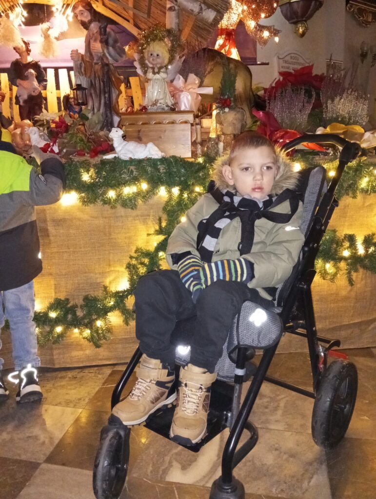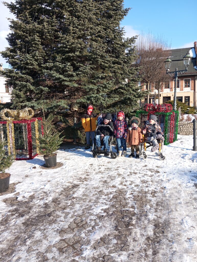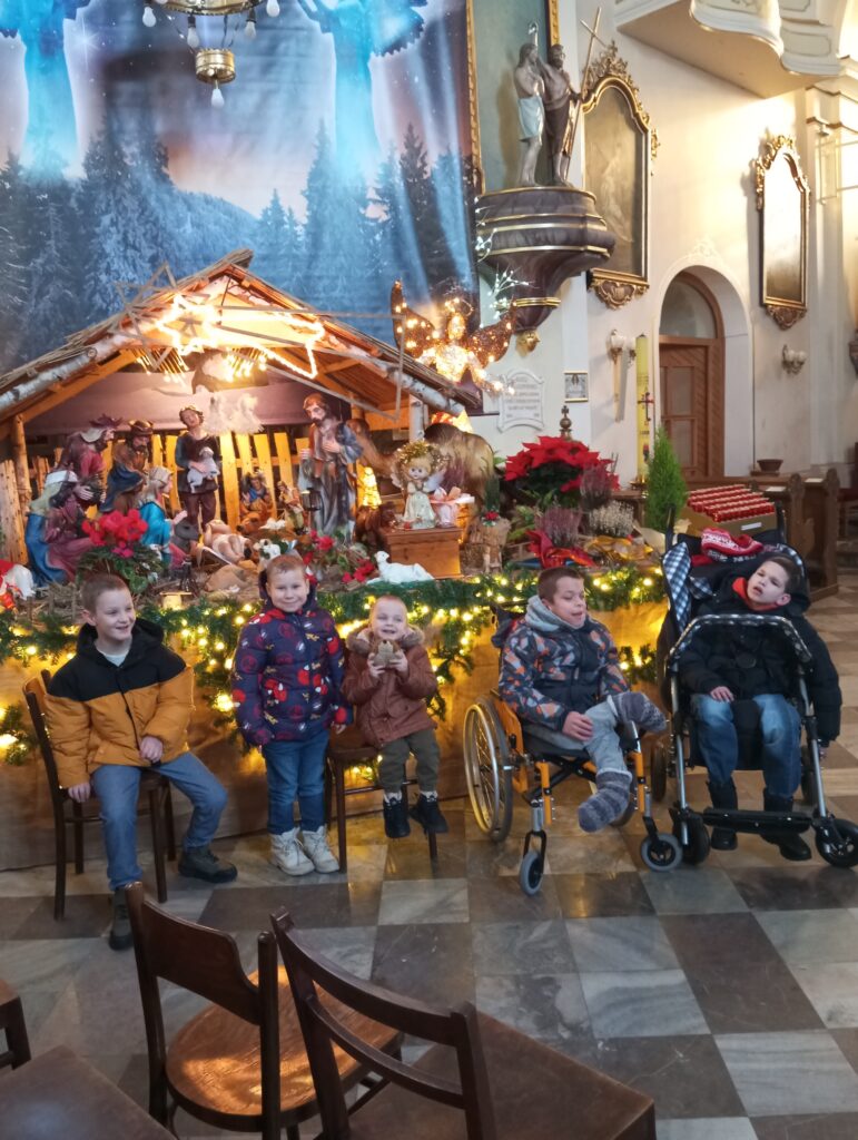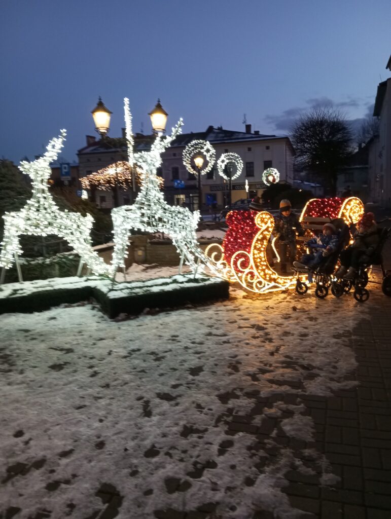 Najmłodsi chłopcy wybrali się do strumieńskiego kościoła, by zobaczyć bożonarodzeniową szopkę – z ciekawością, uważnością i dziecięcym zachwytem. Później spacer poprowadził ich przez miasto aż na rynek, gdzie nadal czeka choinka i sanie Świętego Mikołaja.