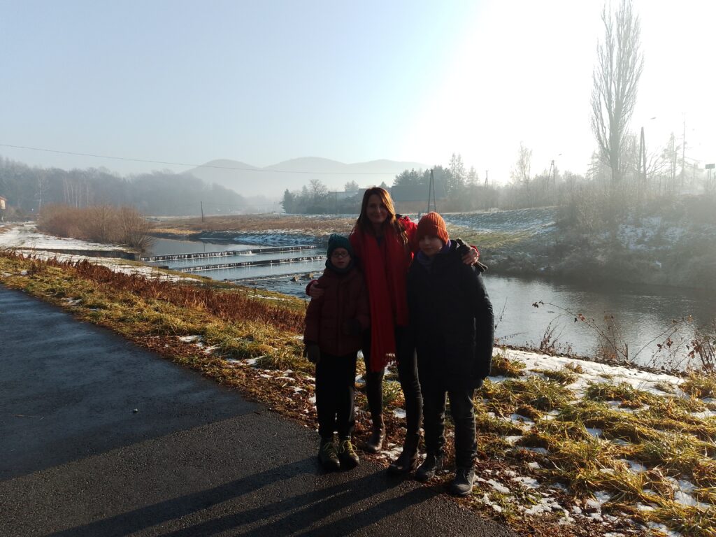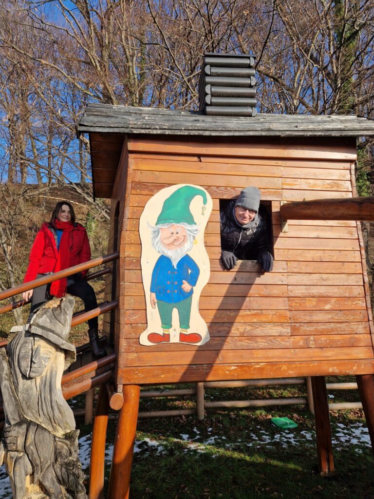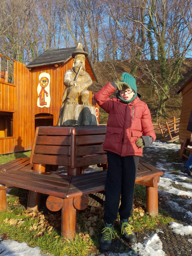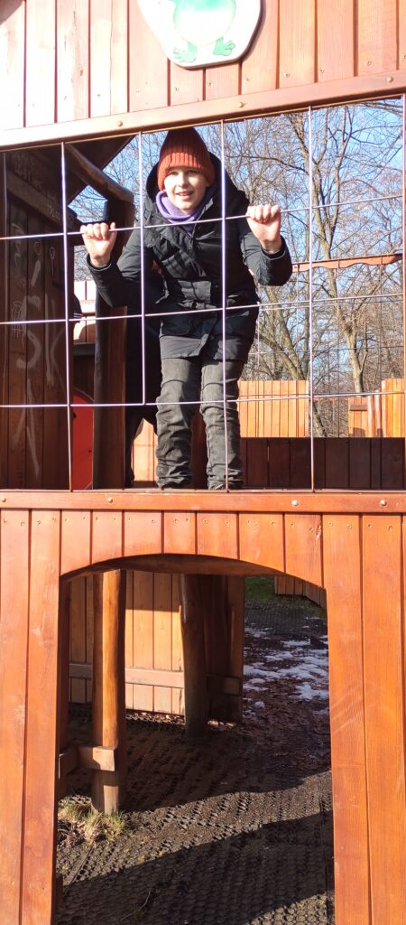 Przy okazji wybraliśmy się na zimowy spacer deptakiem wzdłuż Brennicy zaprowadził nas do wyjątkowego miejsca – bajkowego placu zabaw w Górkach Wielkich, inspirowanego twórczością Zofia Kossak.