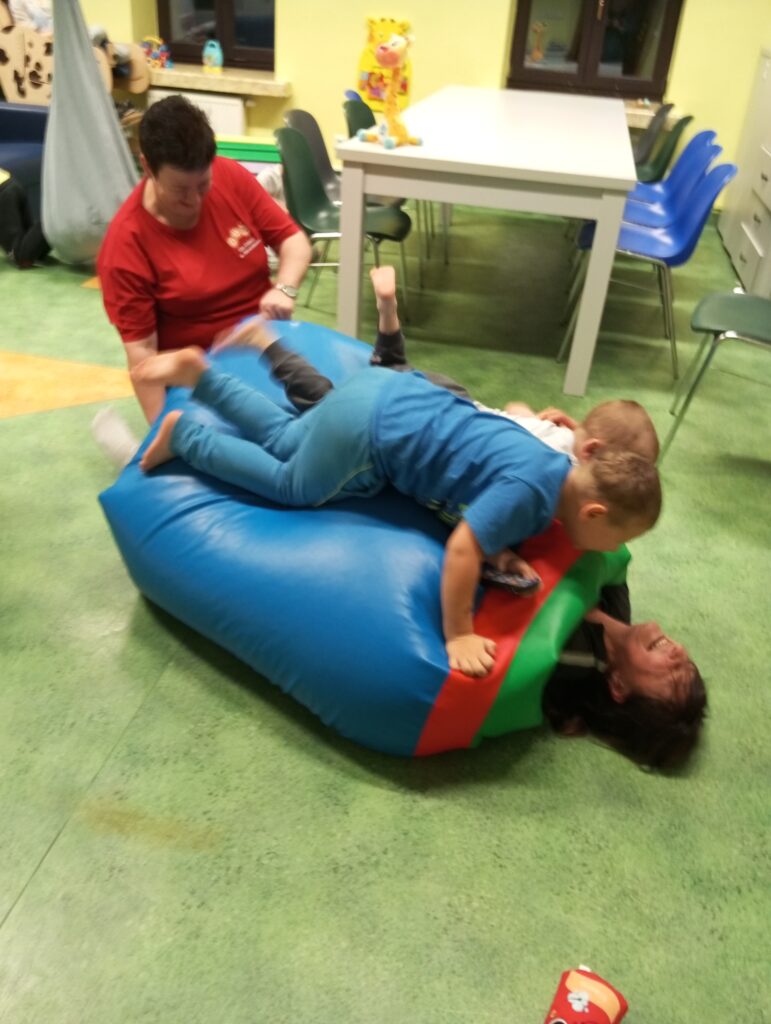 Rehabilitacja to u nas nie tylko praca nad sprawnością, ale również czas na radość i budowanie motywacji – dlatego w ramach aktywizacji ruchowej pojawiają się także gry i zabawy, które łączą terapię z przyjemnością.
