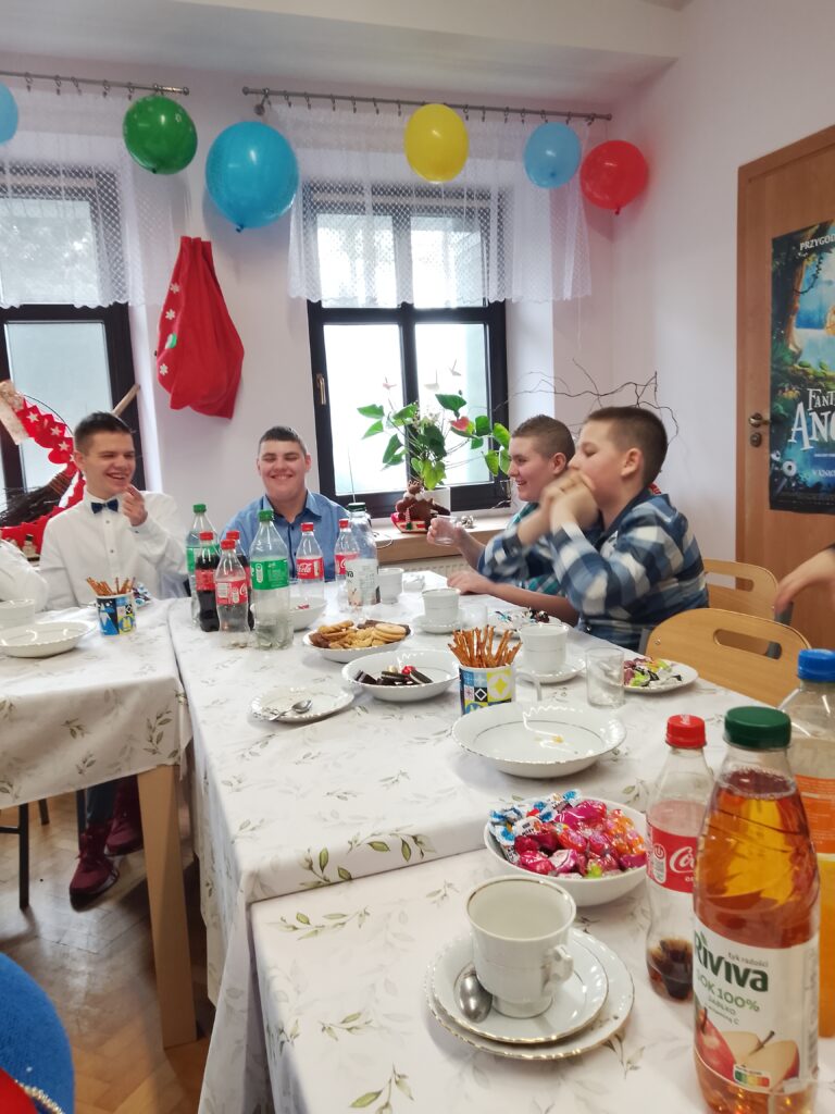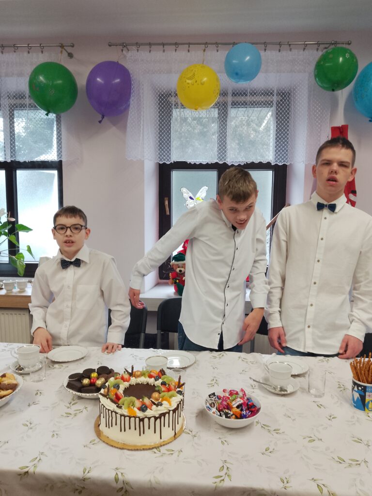 Obok chłopaków i pracowników naszego Domu, w przyjęciu wzięła udział także rodzina jednego z solenizantów. Śmiech, rozmowy i wspólna zabawa wypełniły pokój ciepłem i radością, a każdy mógł poczuć, jak wyjątkowy jest ten dzień.