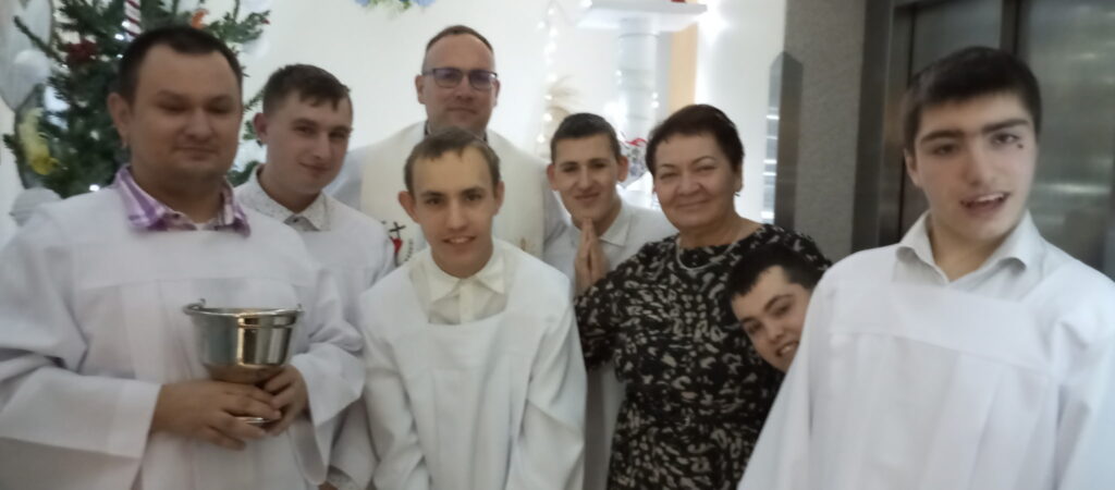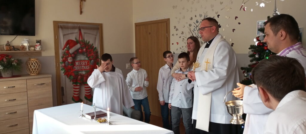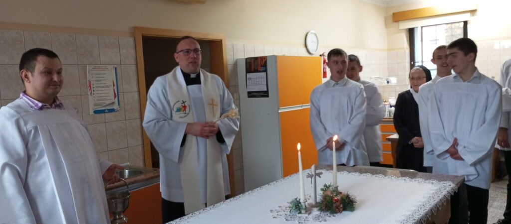 Następnie ks. Piotr odwiedził chłopców oraz pracowników we wszystkich mieszkaniach. Towarzyszyli mu nasi chłopcy w roli ministrantów.