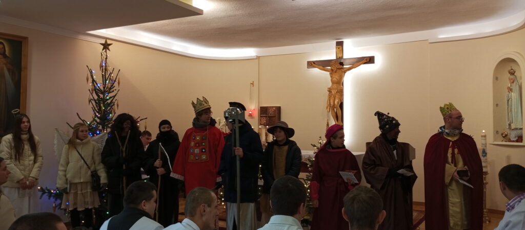 Spotkanie rozpoczęło się wspólną modlitwą i kolędowaniem w naszej Kaplicy – wizyta kolędników była dla nas wspaniałą niespodzianką, za którą dziękujemy ❤