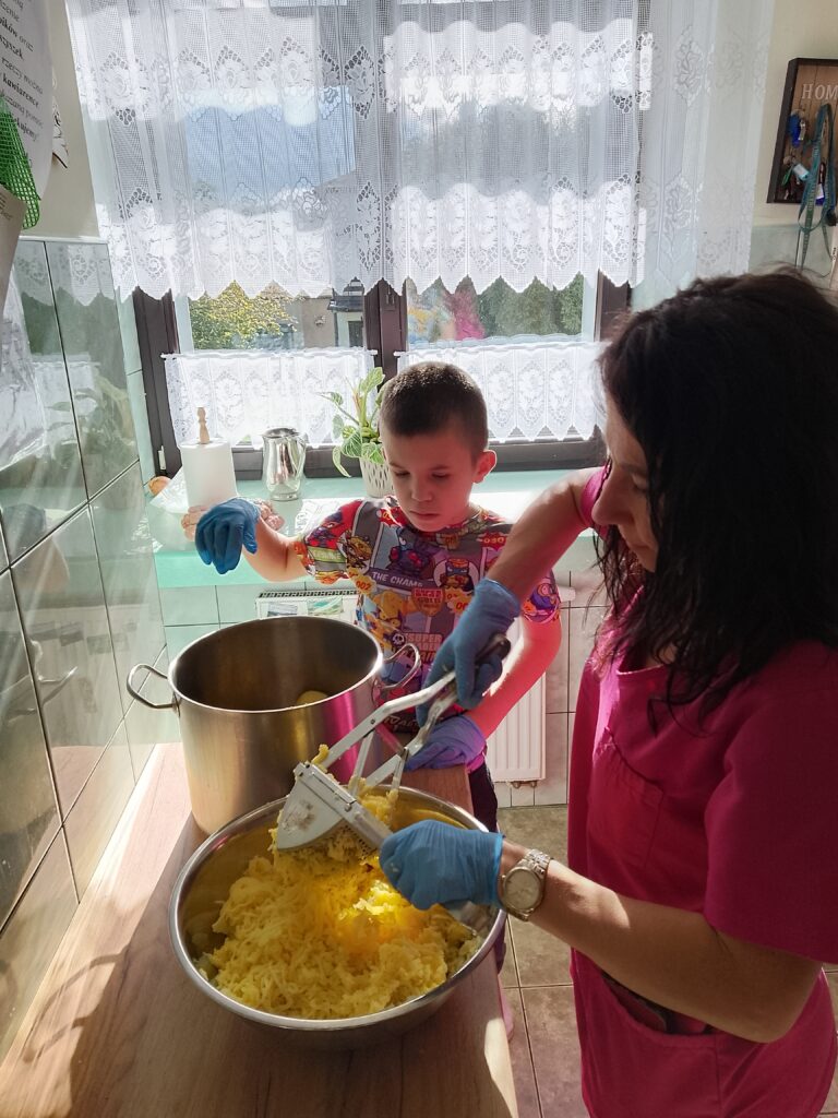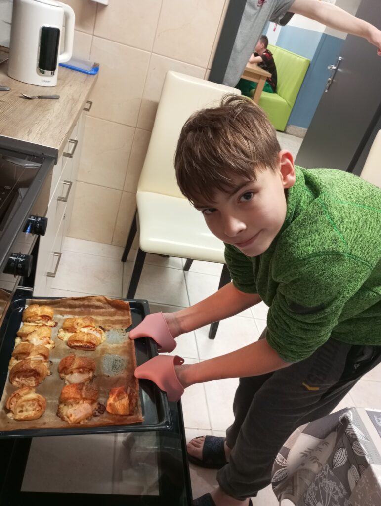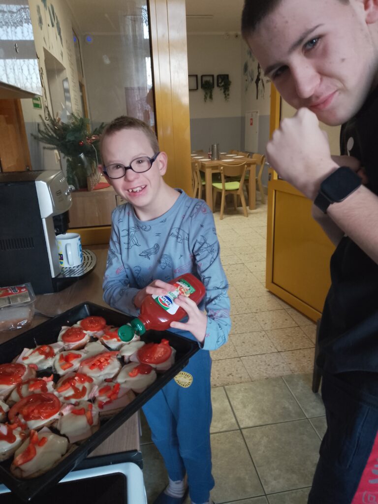 Na szczególne wyróżnienie zasługują chłopcy z mieszkania 4, którzy z pomocą niezastąpionych Pań Opiekunek przygotowali rolady z kluskami i kapustą – to już naprawdę kulinarny poziom mistrzowski i ogromny powód do dumy!