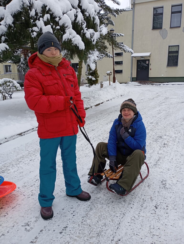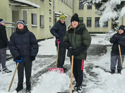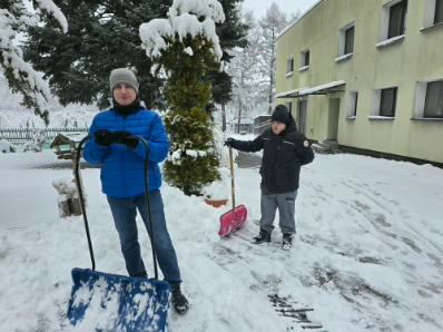 Dlatego z ogromnym uznaniem patrzymy na naszych chłopaków, którzy w ramach terapii poprzez pracę i zgodnie ze swoimi możliwościami, chętnie włączają się w odśnieżanie terenu wokół Domu. To dla nich nie obowiązek, lecz element nauki samodzielności, odpowiedzialności i troski o wspólną przestrzeń