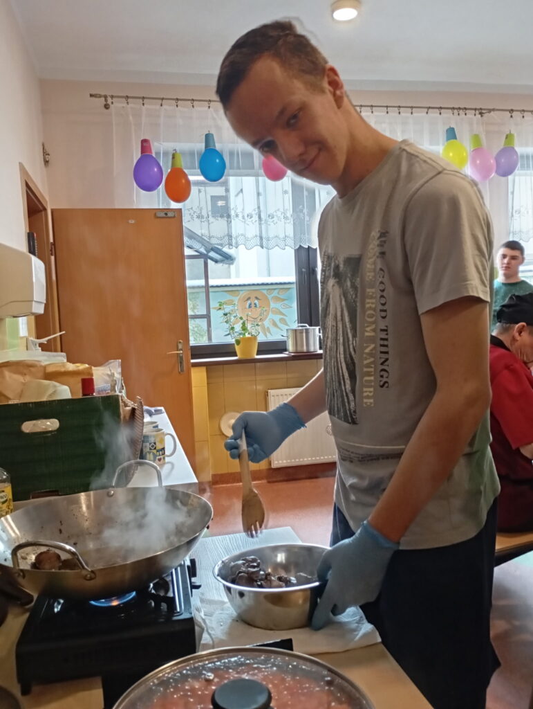 W kuchni panowała skupiona atmosfera, przeplatana rozmowami i uśmiechami. Każdy dołożył coś od siebie – trochę pracy, trochę serca. A później była już tylko radość wspólnego posiłku.